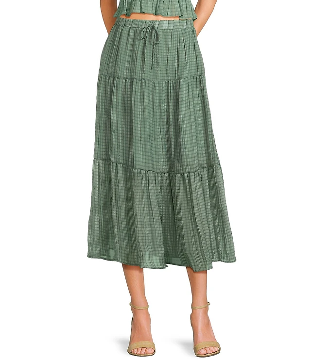 Angie Coordinating Ruffle High-Low Hem Midi Skirt