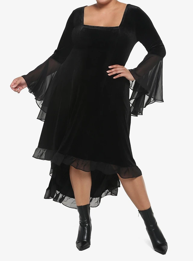 Retro Print Bell Sleeves Go Dress with Headband Plus