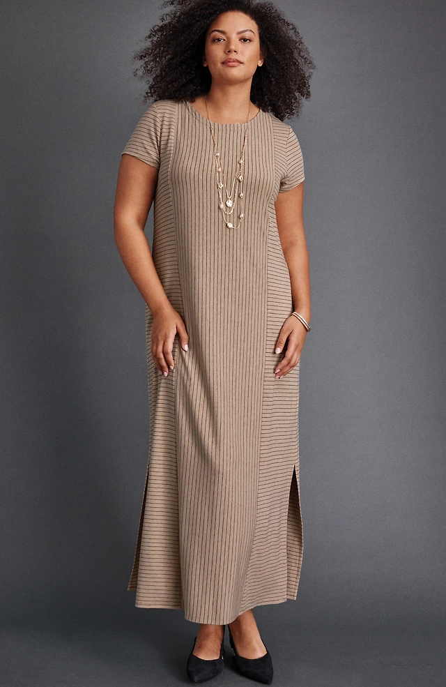 Kiyonna Plus Maritime Ruffle Maxi Dress with Sleeves