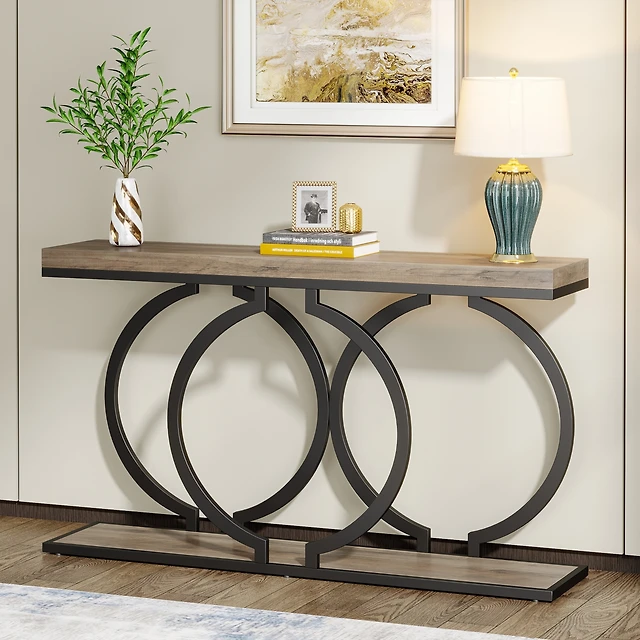 Tribesigns 63 Inch Entryway Console Table, 2-Tier Farmhouse Narrow Sofa Table Behind Couch, Accent Entrance Console Furniture, Rustic Brown