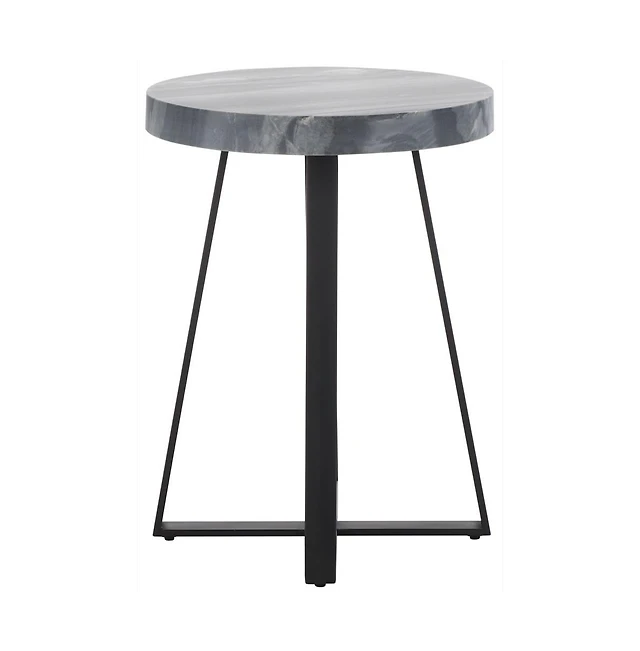 Lovmor Contemporary Round Accent Table with Grey Laminate Top & Black Metal Base