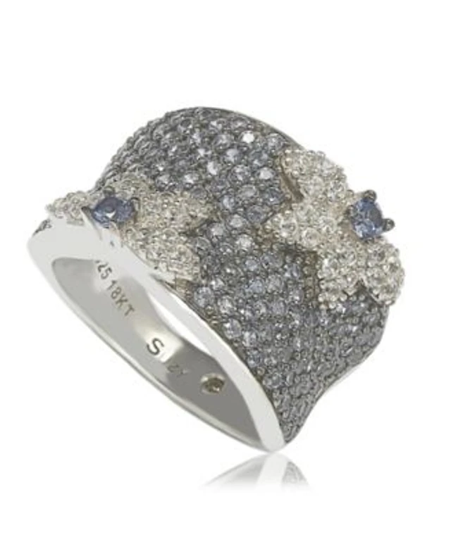 Suzy Levian Sterling Silver Sapphire Created White Sapphire Exotic Flower Ring