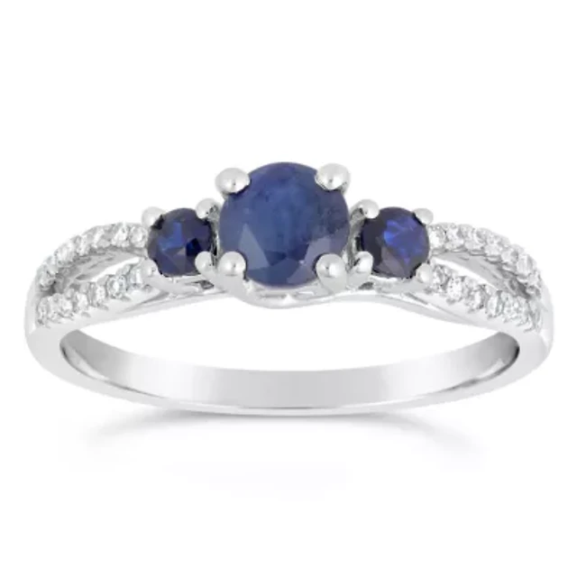Effy Final Call Womens Genuine Blue Sapphire & 1/3 CT. T.W. Natural Diamond 14K White Gold Cocktail Ring