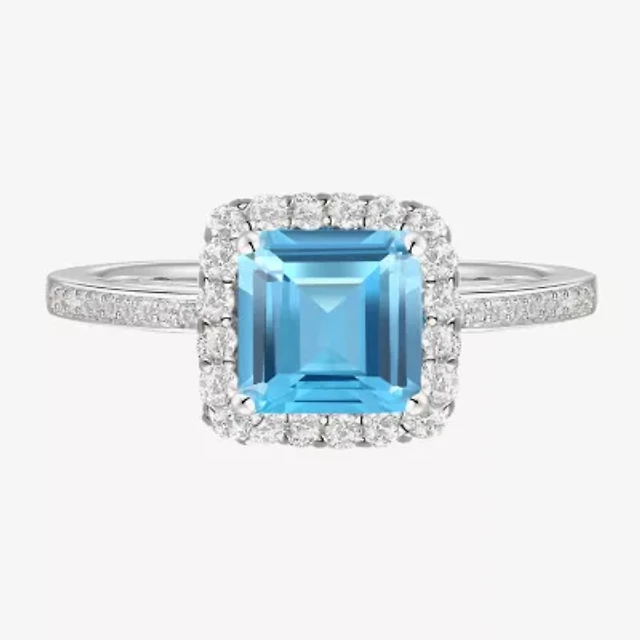 Lab-Grown Spinel Aquamarine (1-3/4 ct. t.w.) and Sapphire (1/4 Halo Ring 10K White Gold