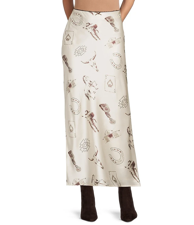 Bailey Rose Western Horseshoe Print Silk Maxi Skirt