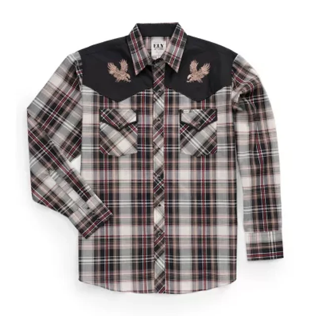 Lucky Brand Plaid Long Sleeve Woven Western Shirt