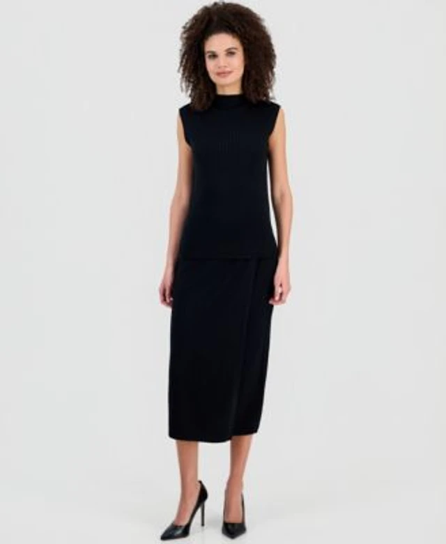 Ellen Tracy Women's Long Rib Knit Skirt with Button Detail