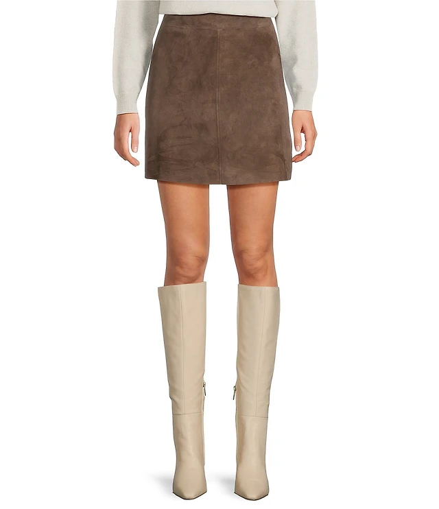 KatieJNYC Mini Suede Scallop Fit and Flare Autumn Skirt