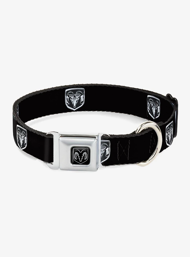 Ram Black Silver Logo Seatbelt Buckle Dog Collar