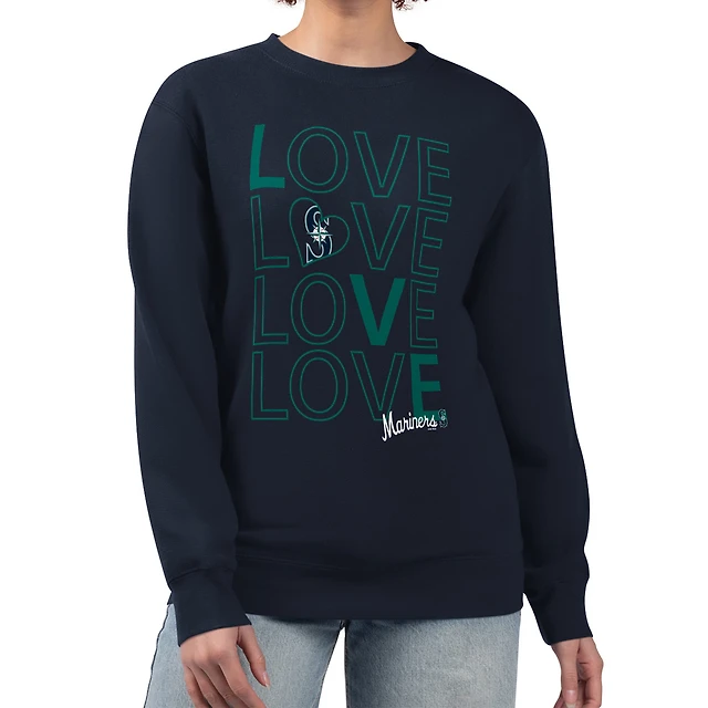 G-iii 4Her by Carl Banks Women's White Seattle Mariners Distressed Baseball Team Fleece Pullover Sweatshirt