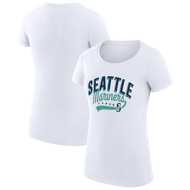 Women's G-III 4Her by Carl Banks White Seattle Mariners Super-Slim Fit Lightweight Dot Print T-Shirt