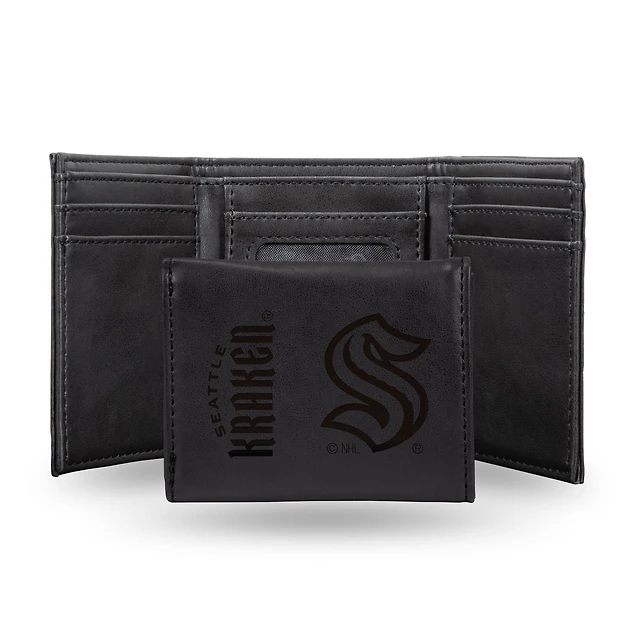 Black Seattle Kraken Laser Engraved Tri-Fold Wallet