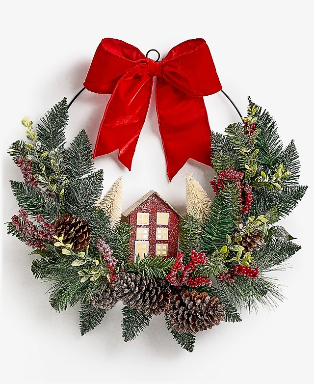 Holiday Lane Heritage Pine And Red Ornaments Wreath, Macy's Exclusive