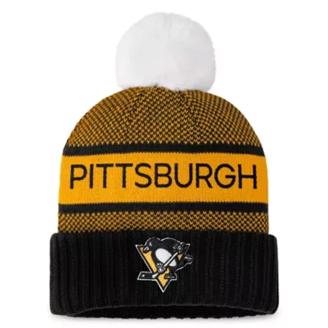 NHL Fanatics Black/Gold Pittsburgh Penguins Authentic Pro Rink Cuffed Knit Hat with Pom