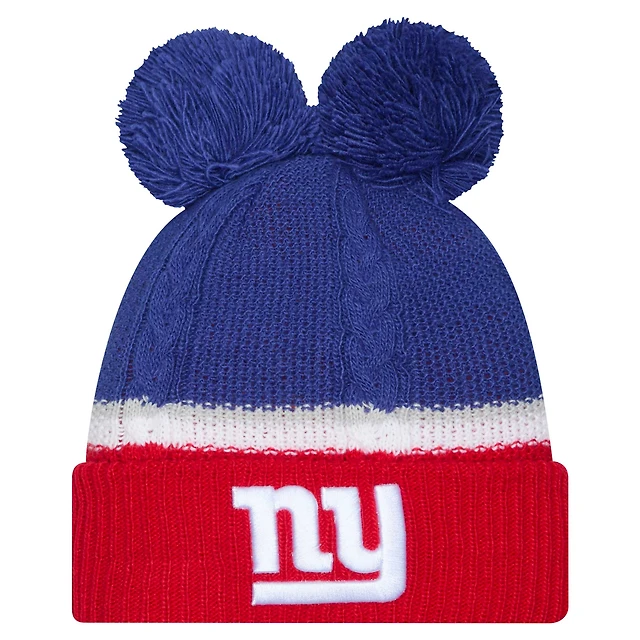 Women's New Era Royal New York Giants Double Bubble Cuffed Knit Hat with Poms