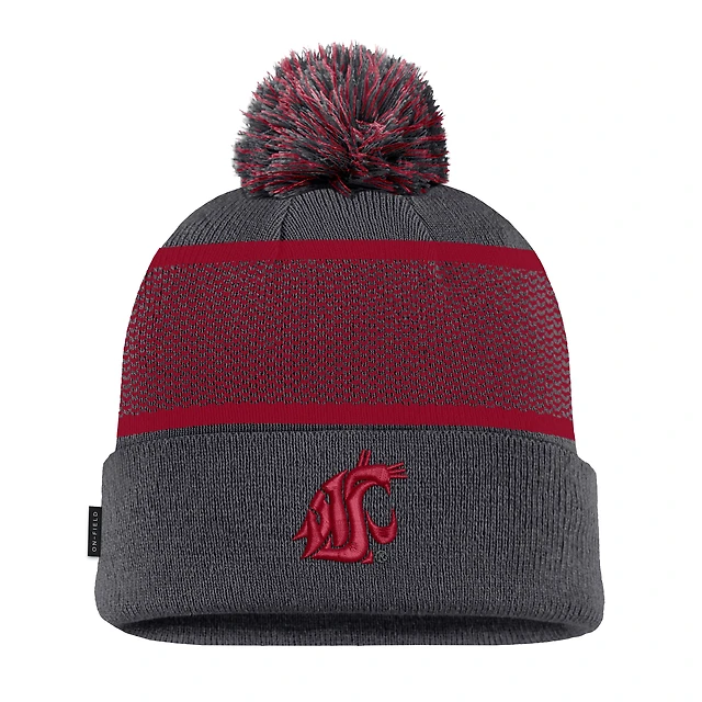 Men's Nike Anthracite Washington State Cougars 2024 Sideline Peak Cuffed Knit Hat with Pom
