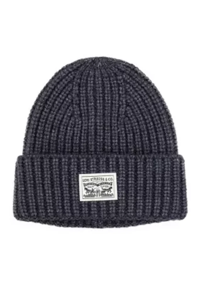 Deux par Deux Baby Boy Lined Peruvian Knit Hat with Pompom Taupe and Navy - Baby