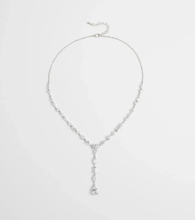 Dainty Glam Rhinestone Chain Lariat Necklace