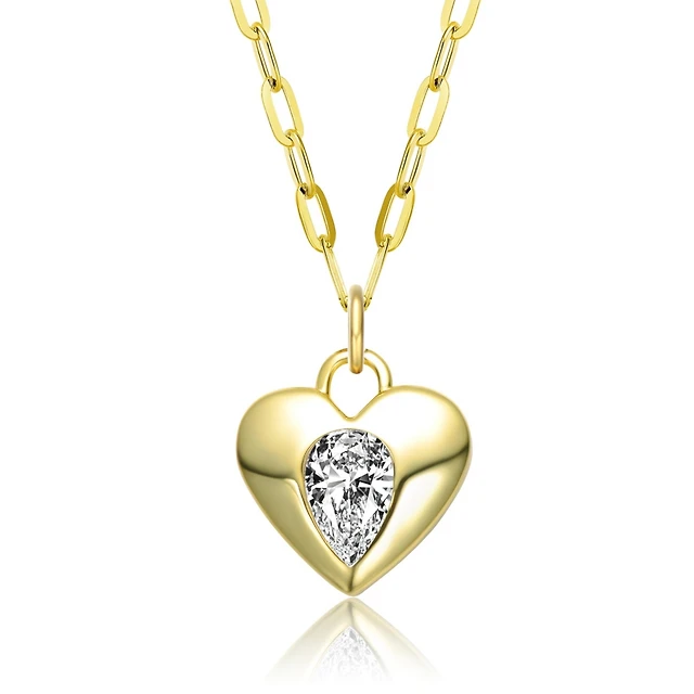 14K Gold Plated wth Clear Cubic Zirconia Interlocking Links Necklace