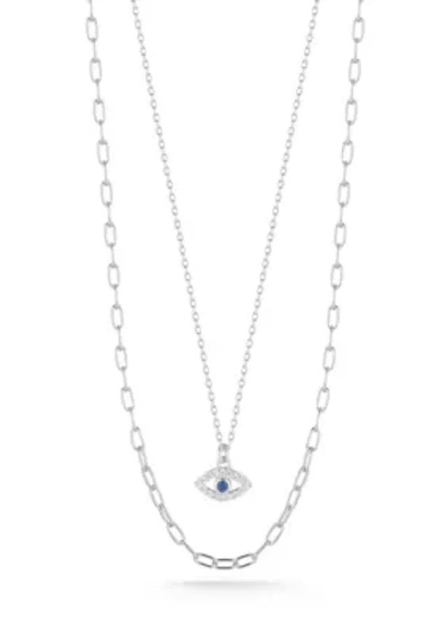 14K Gold Plated with Clear Cubic Zirconia Evil Eye Pendant Necklace