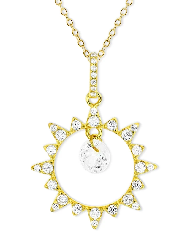 14K Gold Plated Cubic Zirconia Hammered Pendant Necklace