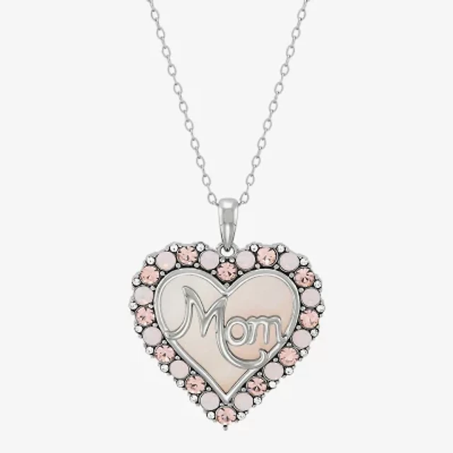 "Mom" Womens 1/4 CT. T.W. Lab Grown White Diamond Sterling Silver Heart 18 Inch Pendant Necklace
