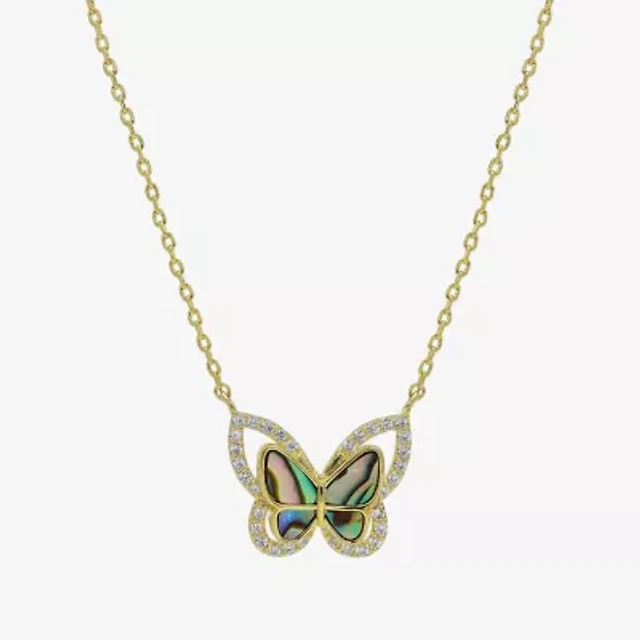Womens White Cubic Zirconia 14K Gold Over Silver Butterfly Round 18 Inch Pendant Necklace