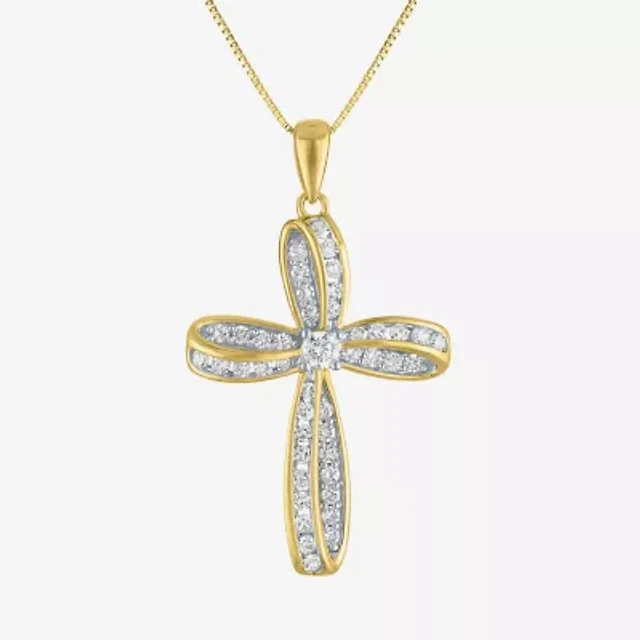 Womens 1/2 CT. T.W. Natural White Diamond 14K Gold Cross 18 Inch Pendant Necklace