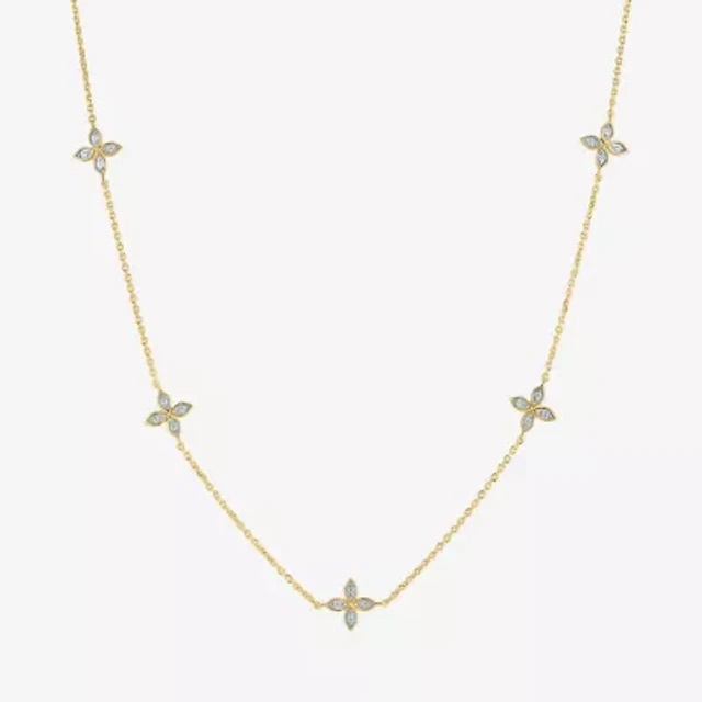 10K Hollow Gold CZ Bezel Set Thin Curb Chain - 18"