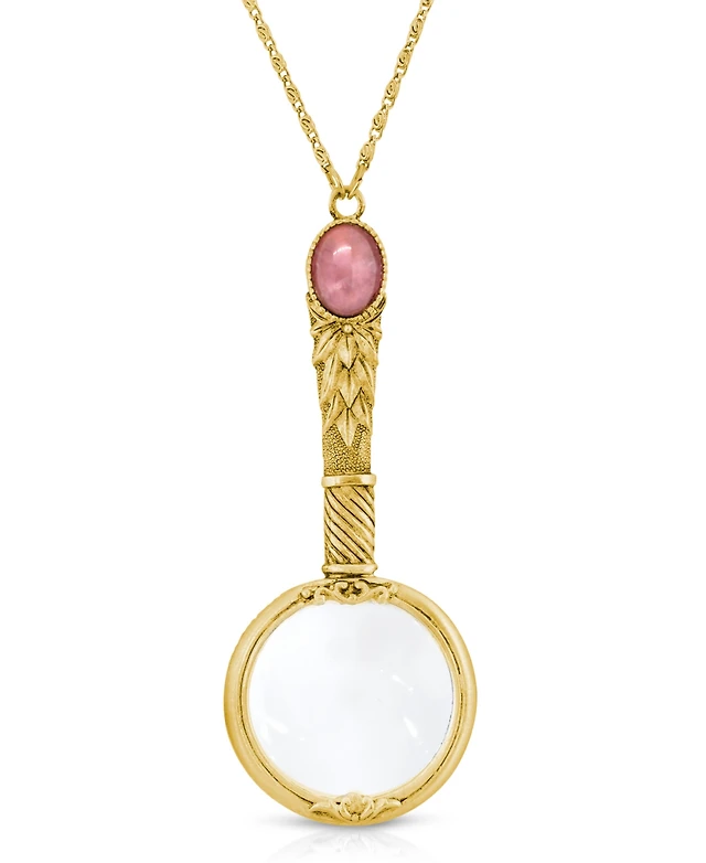 Gold Tone Long Chain Necklace with Faceted Pink Oval Stone Orbital Pendant