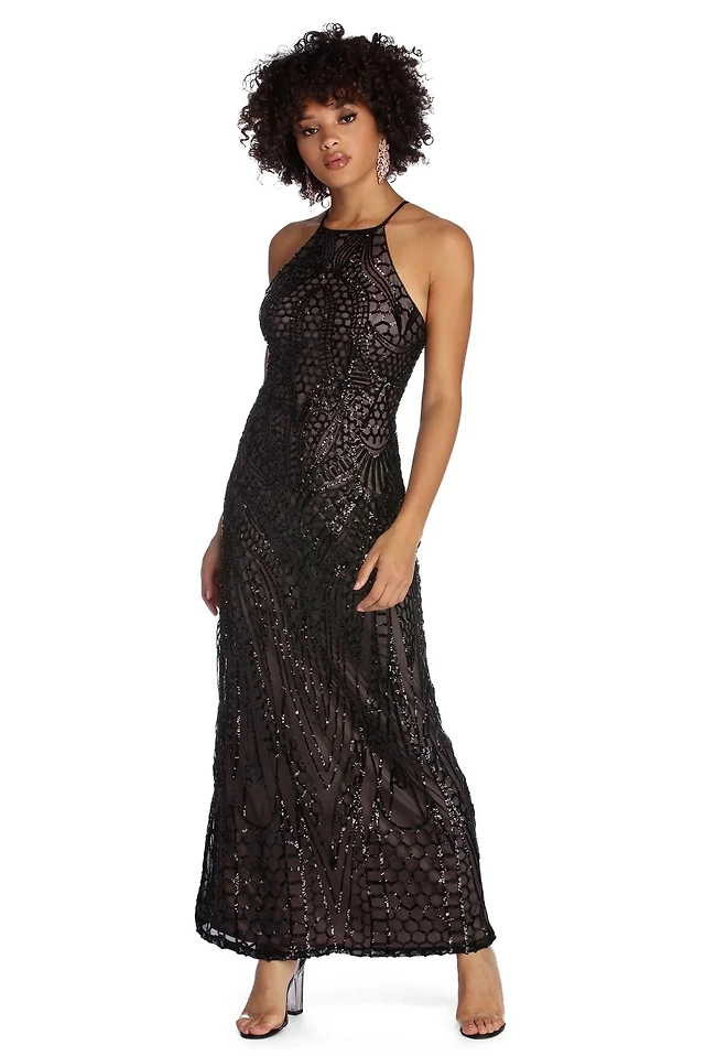 Jailene Formal Sequin Halter Dress