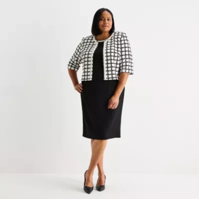 Ignite Evenings Short Sleeve Embellished Crew Neck 2-Piece Jacket Dress