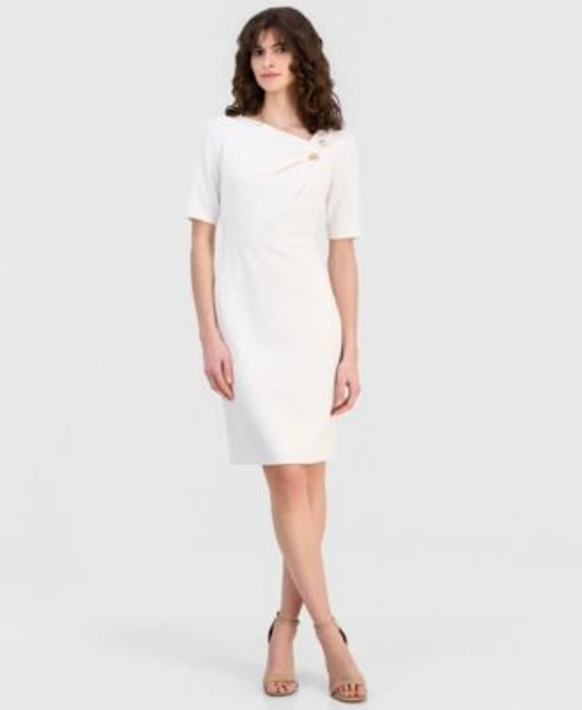 Susana Monaco Stretch Knit Boat Neck Long Sleeve Scoop Back Asymmetrical Hemline Midi Dress