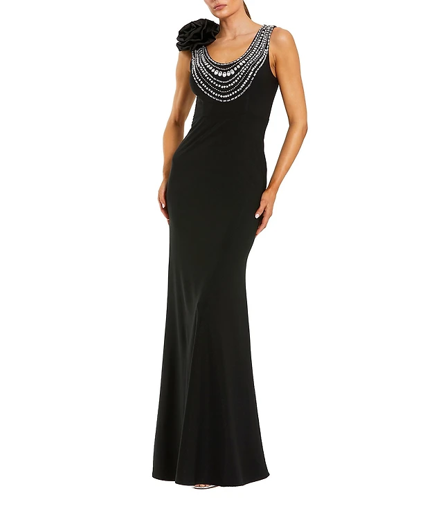 Mac Duggal Women's Jersey Floral Embroidered Illusion Neck Gown