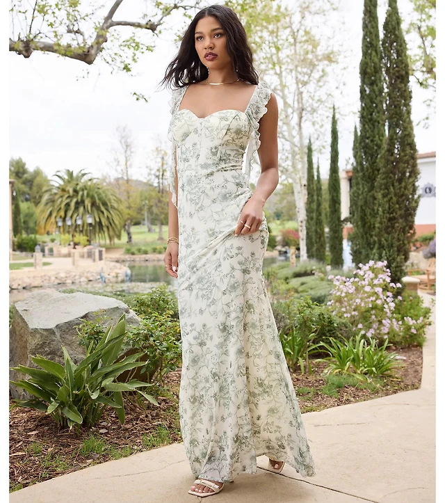 Melita Ruffle Mermaid Floral Mesh Formal Dress