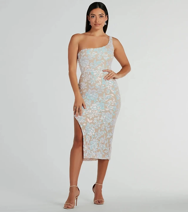 Touch Of Glamour Lace-Up Floral Sequin Midi Dress