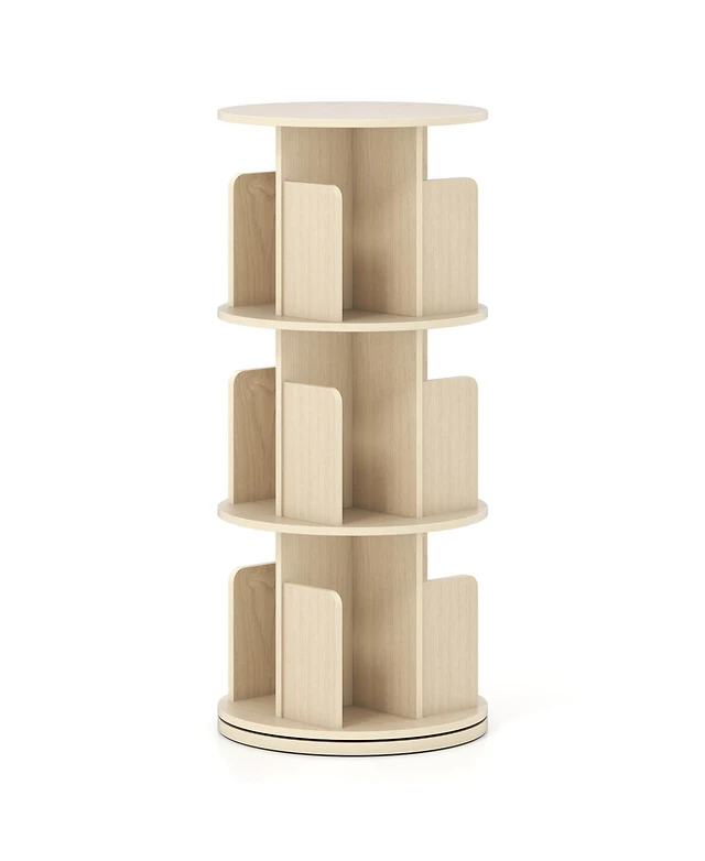 Slickblue 3-Tier Rotating Bookshelf with Dividers and Anti-falling