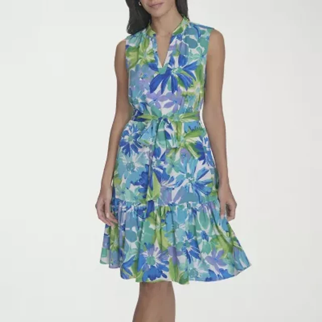 Dkny Womens Sleeveless Zipper Front Belted Jacket Dress