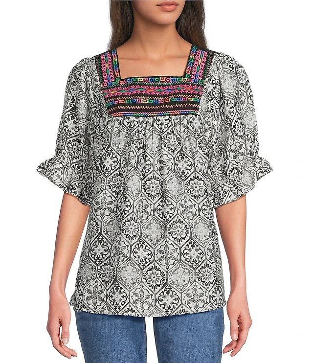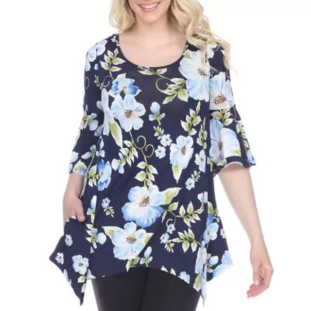 Ali Miles All-Over Butterfly Round Neck 3/4 Sleeve Tunic