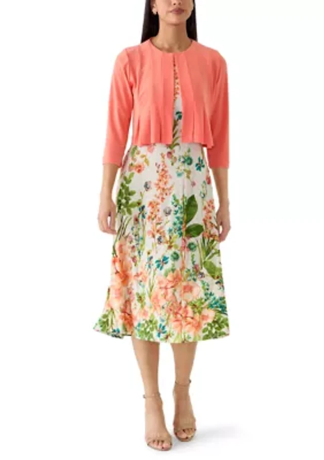 Women's Floral Printed Dress with Jacket Set