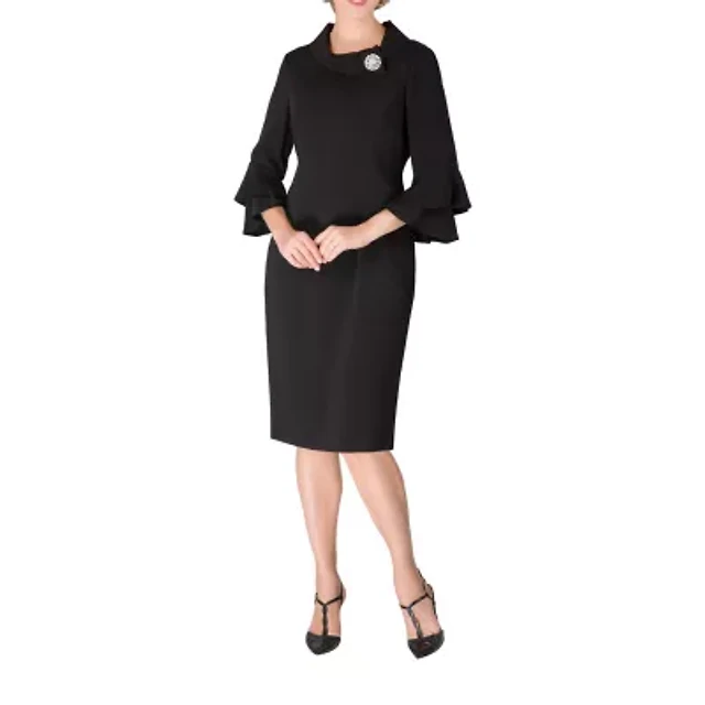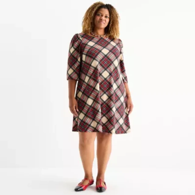 Standards & Practices Plus Crepe Knit 3/4 Balloon Sleeves Midi Shift Dress