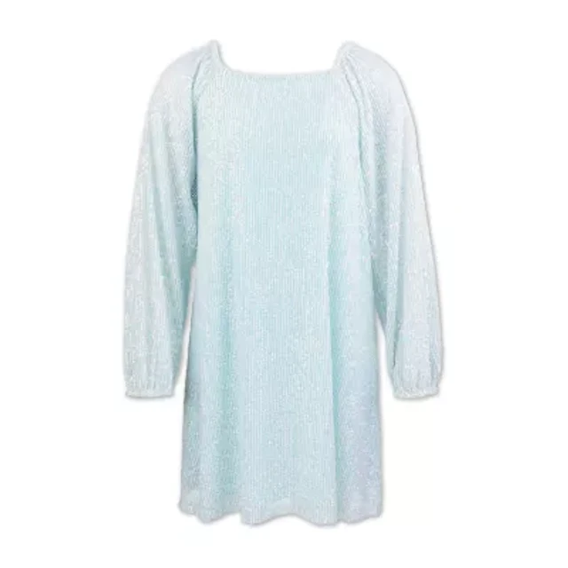 DKNY by Donna Karan Velvet Sequin V-Neck Long Sleeve Shift Dress