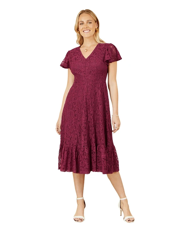Petite Short Flutter Sleeve Slip Dot Midi Dress