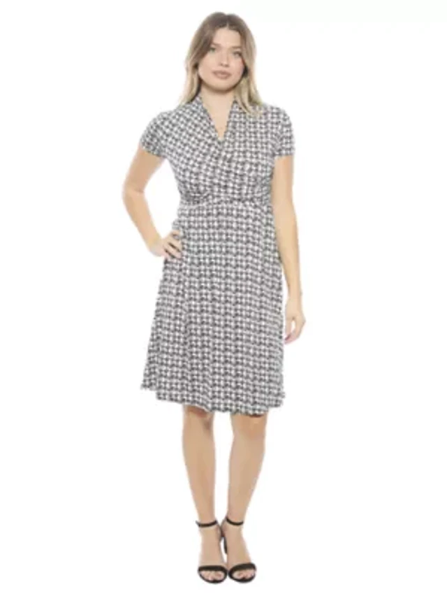 Ming Wang Petite Soft Knit V-Neck Short Sleeve Fit-And-Flare Dress