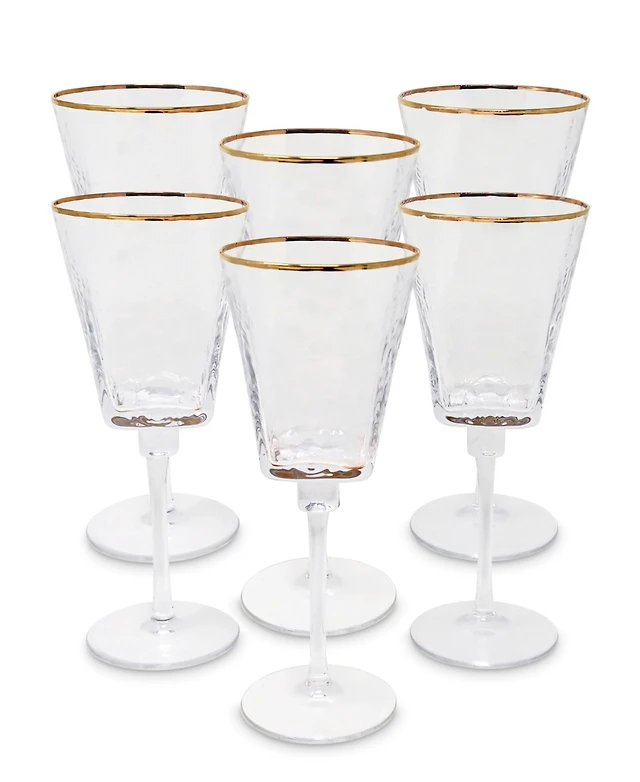 Vivience Square Shaped Rim Hammered Flute Glasses, Set of 6