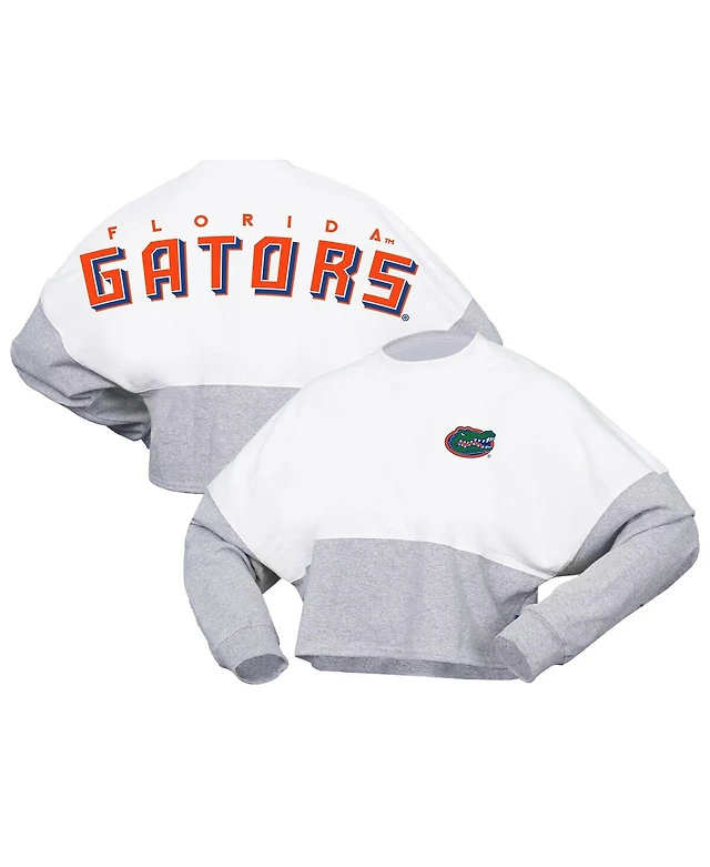 Spirit Jersey Women's White Florida Gators Heather Block Cropped Long Sleeve T-Shirt