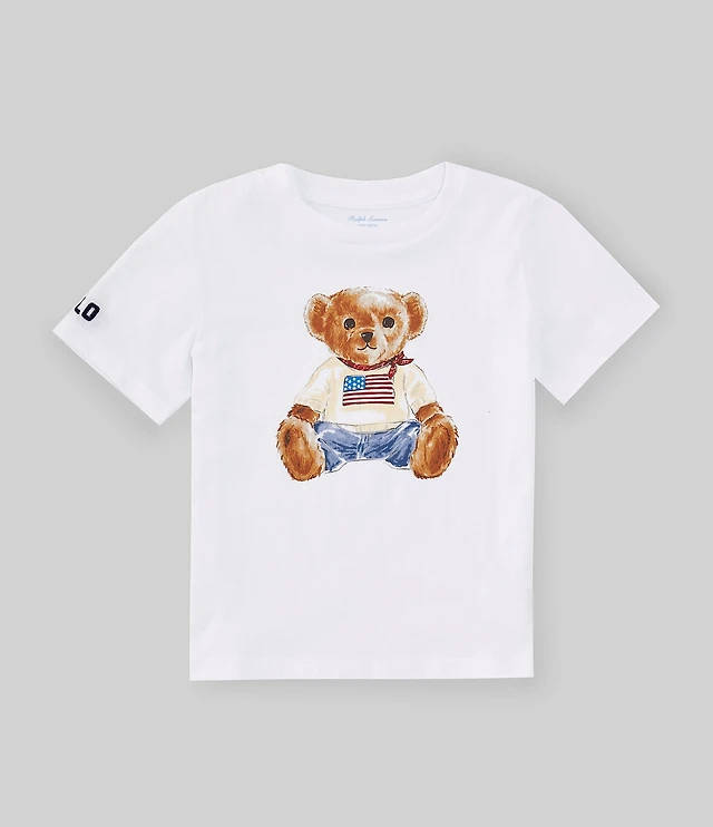 Ralph Lauren Baby Boys Short Sleeve American Flag Polo Bear Jersey T-Shirt