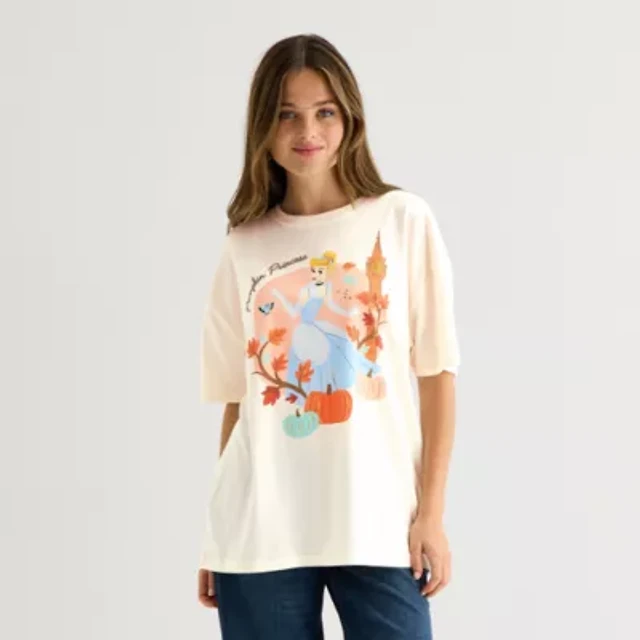 Womens Juniors Crew Neck Short Sleeve Oversized Mickey and Friends Graphic T-Shirt