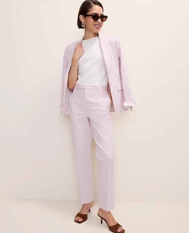 Ann Taylor The Petite Ankle Pant Seersucker Pink/White Combo Women's