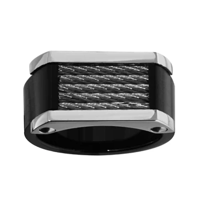 Mens 11mm Gray & Black IP Stainless Steel Ring